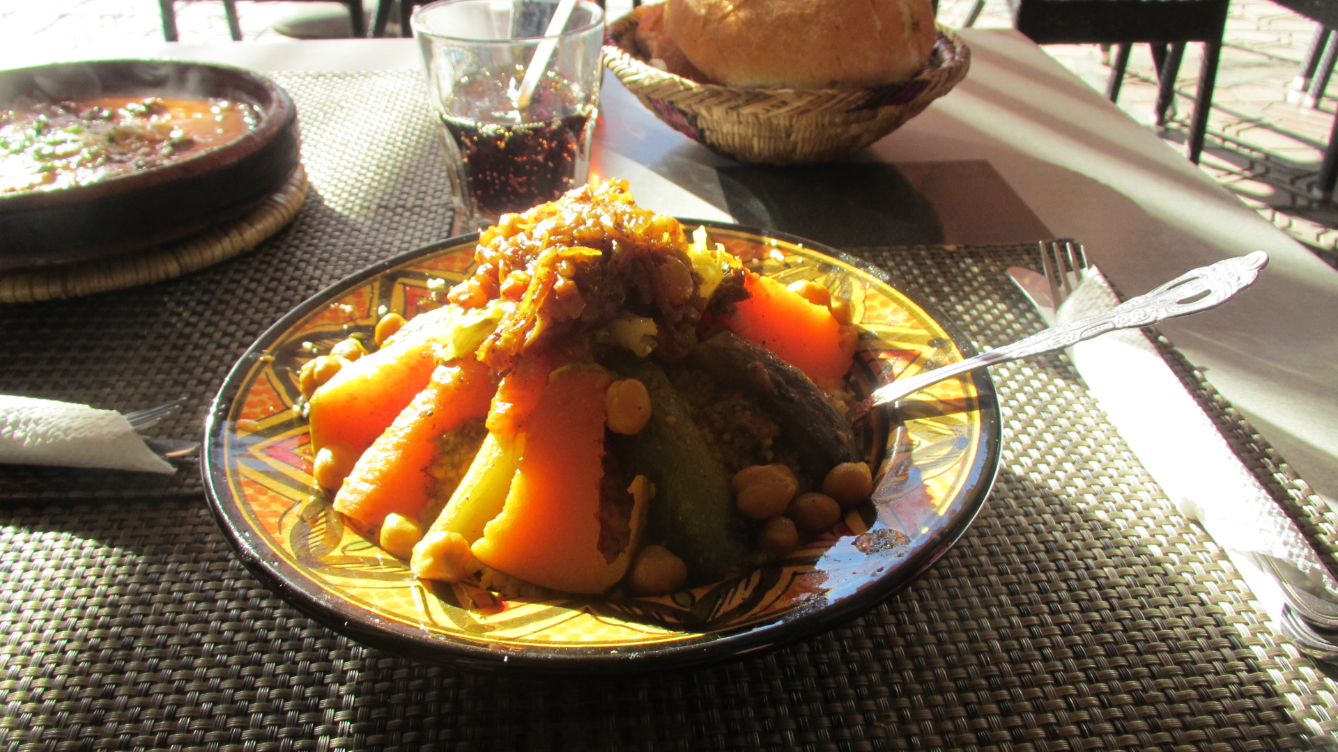 Ovviamente non si può andare via da Marrakech o da tutto il Marocco senza aver assaggiato il tajine, una pietanza a base di carne in umido, che prende il nome dal caratteristico piatto in cui viene cotta, oppure un buon piatto di cous cous vegetariano accompagnato da un bicchiere di kefir, latte fermentato il cui gusto non è adatto a per chi, come me, non ama il latte.I costi per mangiare in un buon ristorante di cucina locale sono molto vantaggiosi e non superano i 5 o 6 euro a persona per un piatto abbondante con bevanda inclusa.