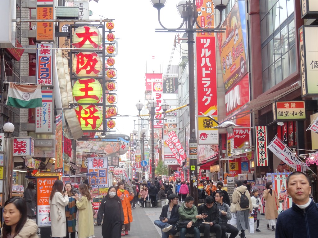 Quindi quale occasione migliore se non un viaggio in Corea del Sud per volare a Osaka in poco più di un’ora. Dall’aeroporto fino ad arrivare a Mamba Station, uno degli snodi ferroviari più importanti del Giappone, l’impresa non è stata così ardua, scelto il treno e fatto il biglietto alle macchinette ci si immerge piano piano in questa realtà fatta di alti palazzi, baie trafficate di grandi navi e insegne psichedeliche. Sono proprio le luci, i suoni e i colori a lasciarmi letteralmente senza parole ,soprattutto quelli del quartiere più famoso e divertente di Osaka: Dotonbori.